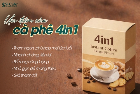 Cà phê hòa tan ngày nay đang rất được ưa chuộng bởi người tiêu dùng bởi sự tiện lợi và hương vị đa dạng và cà phê 4in1 là một lựa chọn đang khá được tin dùng. Vậy thực sự cà phê hòa tan 4in1 là như thế nào? Tại sao nó lại phổ biến đến vậy? Hãy cùng Si Cafe tìm hiểu sản phẩm này nhé.