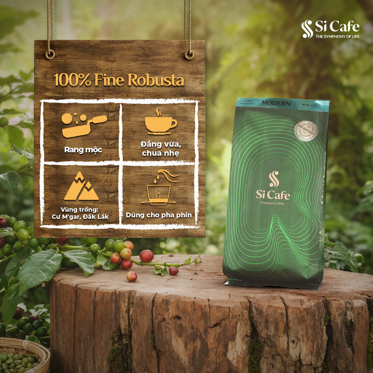 Ở Si Cafe chỉ bán cà phê sạch. Si Cafe lựa chọn theo đuổi phương pháp trồng thuận tự nhiên không bón phân hoá học, thuốc trừ sâu hay chất kích thích sinh trưởng, chúng tôi sử dụng phân bón hữu cơ vi sinh nhằm duy trì sự cân bằng sinh thái đất, cây và môi trường, từ đó giúp giảm nguy cơ tồn dư các độc bên trong hạt cà phê sau khi chế biến và rang xay, mang đến sự an toàn cho người sử dụng.